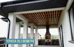 Дом выполнен из качественных материалов: газосиликат Ytong, шведская черепица, премиальные окна с темным профилем.