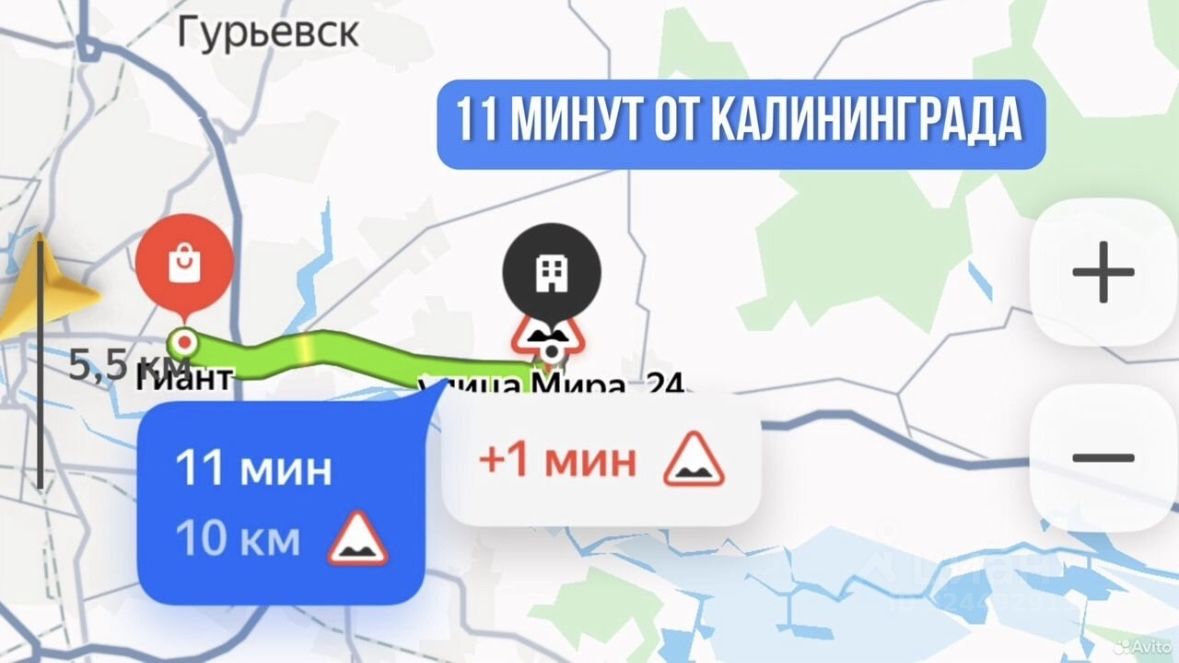 Выгодное расположение: 6 мин до Калининграда по трассе, рядом новый кардиоцентр, остановка школьного автобуса через дорогу.