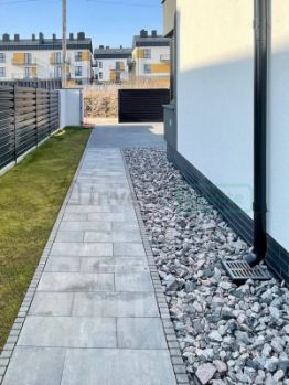 - Терраса с зоной барбекю, дорожки, щебеночные клумбы.