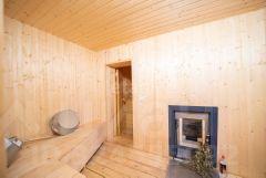 Отопление - двухконтурный газовый котёл. Также есть твердотопливная печь