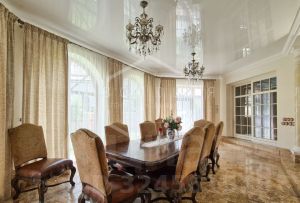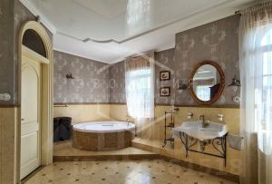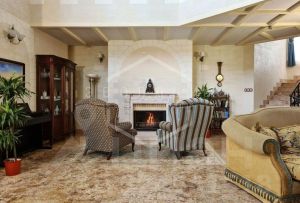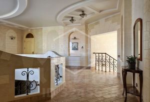 В интерьере данной недвижимости можно увидеть присутствие испанского и французского направлений, взятых из средиземноморского стиля. Дом укомплектован особой мебелью, отличается она классическими линиями, искусно отполированными поверхностями, кованными и витражными вставками в элементах декора.