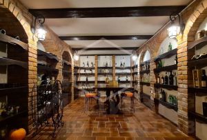 Оборудована спа-зона, которая включает в себя хамам, баню на дровах, большой бассейн 21 кв.м с выходом в зону отдыха и винным погребом.