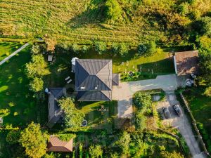 Летняя веранда- терраса - пьете утренний кофе, а вдали по полю у кромки леса заняты своими делами кабаны, лисы, важно выхаживают по полю аисты и цапли, стремглав пролетают стрижи