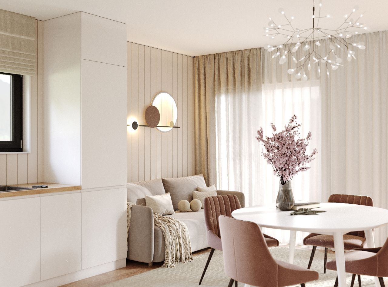 * Коммуникации: скрытая разводка электричества; скрытая разводка водопроводных и канализационных труб с выводами для подключения сантехнических приборов.