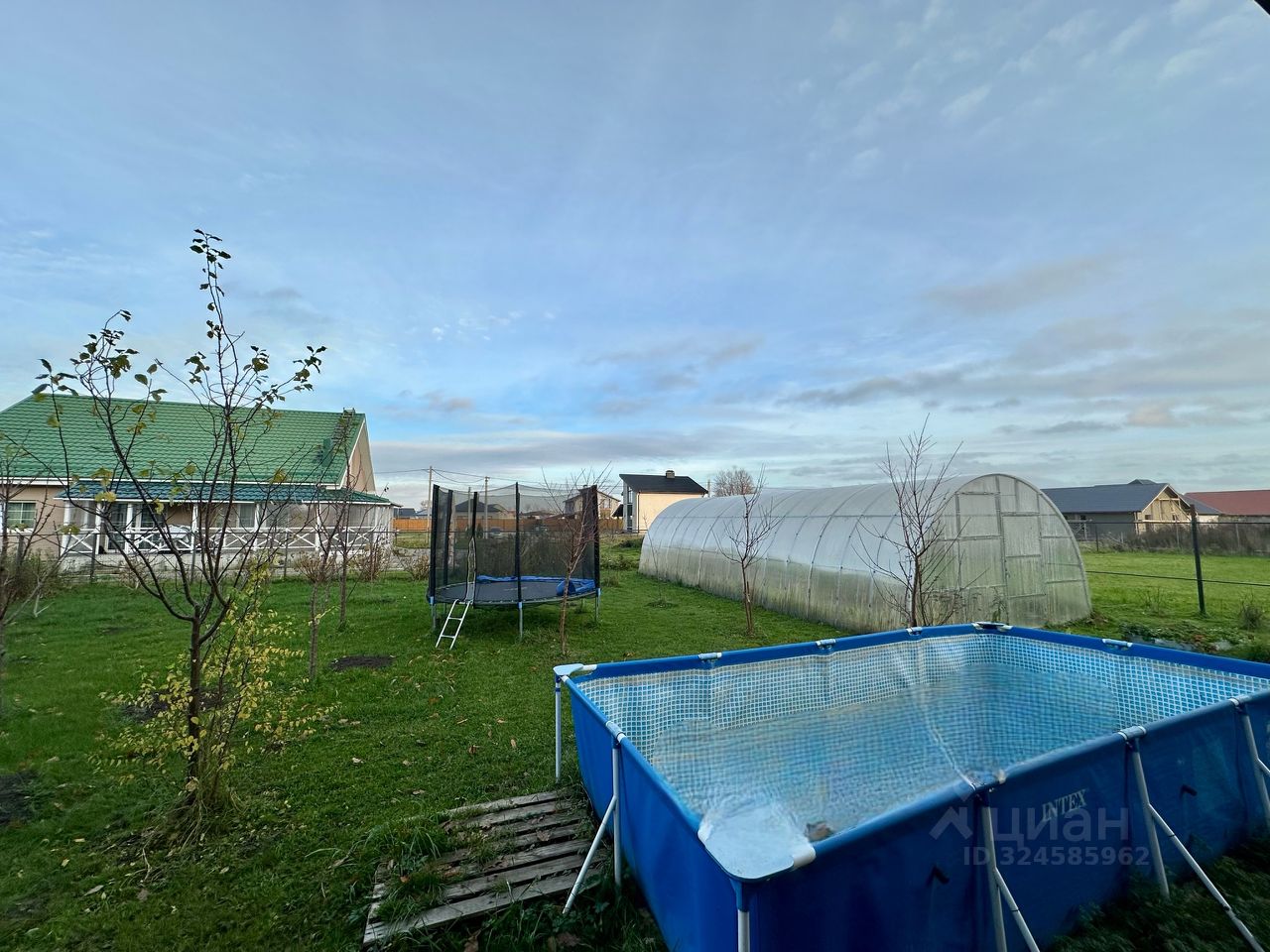 На участке : молодой фруктовый сад, газон, бассейн, батут, теплица 4,2мХ10м.