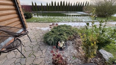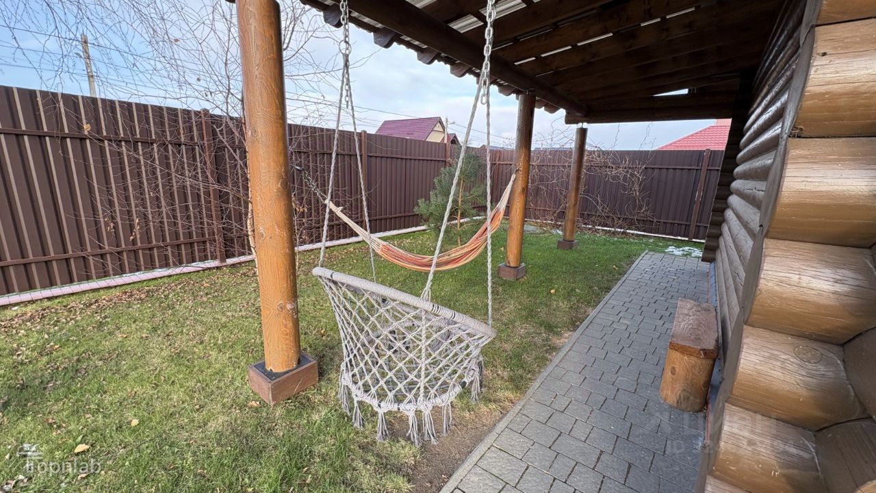 На территории площадка для игры в теннис, пруд - охлаждаться после паренья, большая открытая терраса для отдыха после бани, навесные гамаки и качели под навесом.