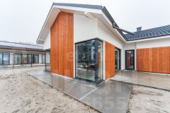 Финишная отделка: Внутренняя отделка выполнена в черном ключе, окна алюминиевые (профиль Alu Terra).