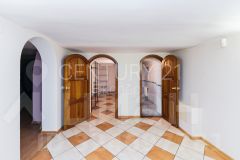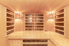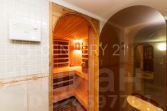 В доме предусмотрены три спальни, три санузла, просторная кухня-гостиная, сауна, бассейн, спортивный зал, а также гараж.