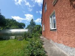 Дом в черте города, на участке растут плодовые деревья (вишня, груша, яблоки (сортовые), грецкий орех, смородина) , клубника и две теплицы.