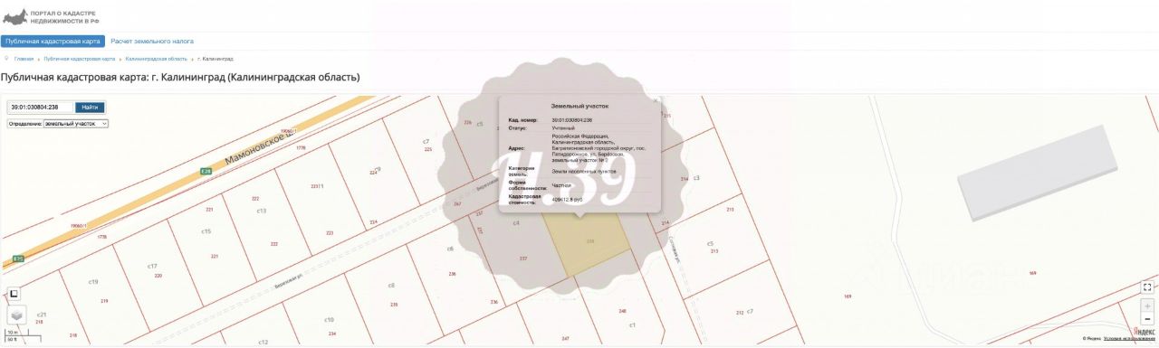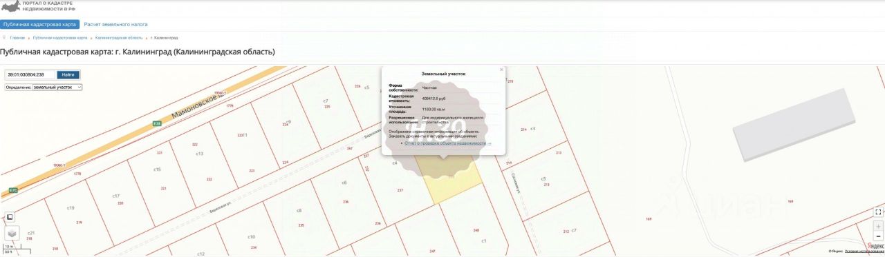 Зона застройки Ж-4. Кадастровый номер участка 39:01:0308042:238