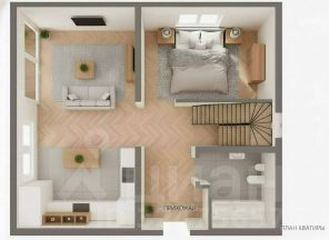 1 этаж: просторная кухня-гостиная с прямым выходом на террасу (идеально для летних обедов и отдыха), кабинет (или спальня), кладовая, санузел.