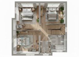 2 этаж: три изолированные комнаты, гардеробная, санузел.
