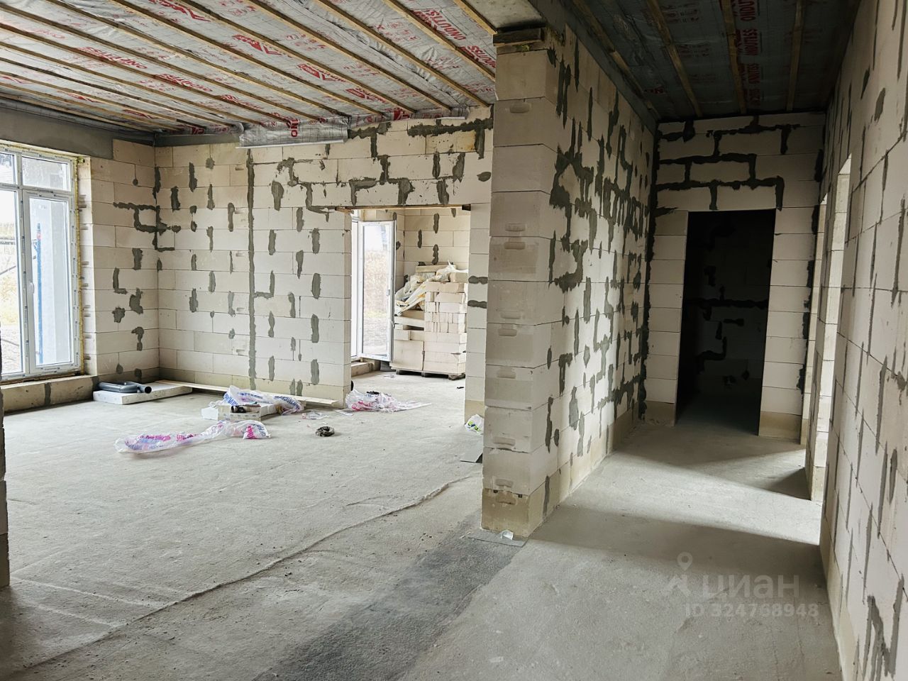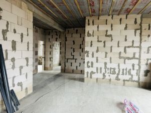 Стены дома выполнены из газобетонного блока 300мм, внутренние перегородки из газобетонных блоков толщиной 150мм.