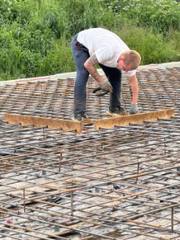 Фундамент дома - монолитная железобетонная плита толщиной 300мм с утеплением экструзионным пенополистиролом и устройством тепловых отсечек крыльца и террасы, выполнена разводка канализации, закладные под водоснабжение, заведен силовой питающий кабель, выполнено заземление.