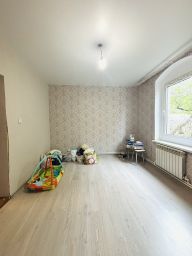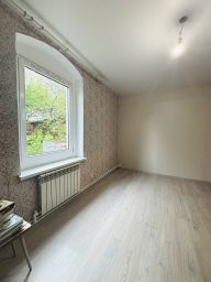 На первом этаже две комнаты и кухня. В спальне пол с подогревом, положен ламинат, натяжной потолок, свежий ремонт.