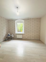 Зал имеет два больших окна, выходящих на солнечную сторону двора. На кухне установлен газовый котел, который обеспечивает нагрев воды и отопление всех помещений квартиры как на первом, та и на втором этаже.