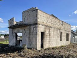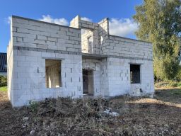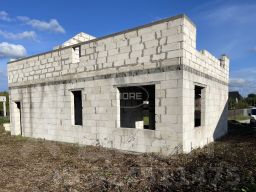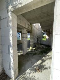 На участке начато строительство дома (залит качественный фундамент-плита, частично возведены стены второго этажа, ж\б перекрытия)