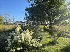 Участок 12 соток, сухой на возвышенности, не затапливает даже в дождливую погоду. Почва не глиняная. Хозяйственная деревянная постройка (20 м2). На участке много декоративных растений, плодовые деревья (персик, яблоня, груша, орех, фундук), различные кустарники и многолетние цветы.
