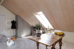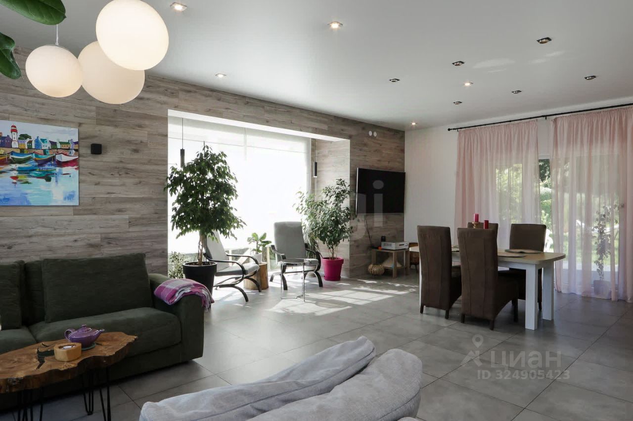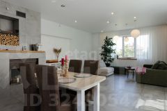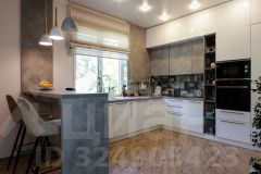 - кухня-гостиная с натуральным камином (кухня 15.05 м.кв., гостиная с панорамным окнами 44.28 м.кв.). Кухонный гарнитур, оснащенный всей необходимой бытовой техникой и посудомоечной машиной. Понорамные окна в пол;