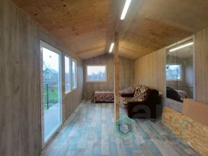 * два крепких домика: один с баней пригоден для круглогодичного проживания, со всеми необходимыми коммуникациями, а второй можно использовать как гостевой домик или техпомещение (мастерскую) с гаражом. Один из домов зарегистрирован, возможна прописка. Заведены в дом все коммуникации (свет- 5 кВт, вода- колодец, заведена в дом насосной станцией Гидрофор, канализация- Био ЛОС, горячая вода- бойлер 80 литров, отопление - электрические теплые полы на 1 этаже и печь ).