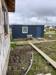 Плюс оставляем жилой домик - вагончик, 6/2,4 м. Можно как гостевой оставить, переделать под баню. Полностью оборудован: душевая кабина, туалет, раковина, полки, комод, диван. В посёлке ФАП, 3 магазина, фитнес клуб, WB, Ozon, база отдыха, детский сад, недалеко автобусная остановка.