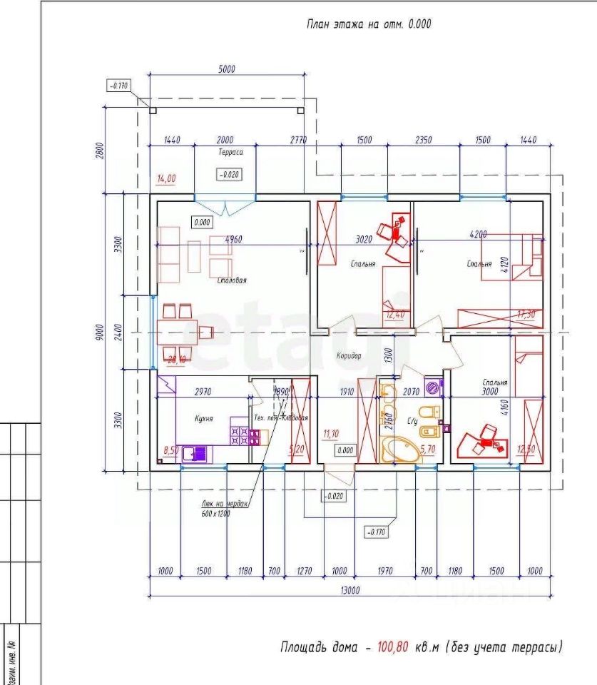 -Дом общей площадью 98 кв.м.(без учёта террасы).