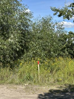 Столбики с красной лентой это границы участка, можете приехать без меня посмотреть (на фото все видно)