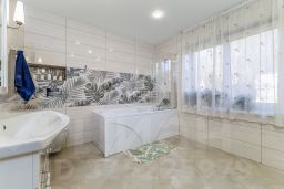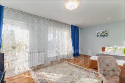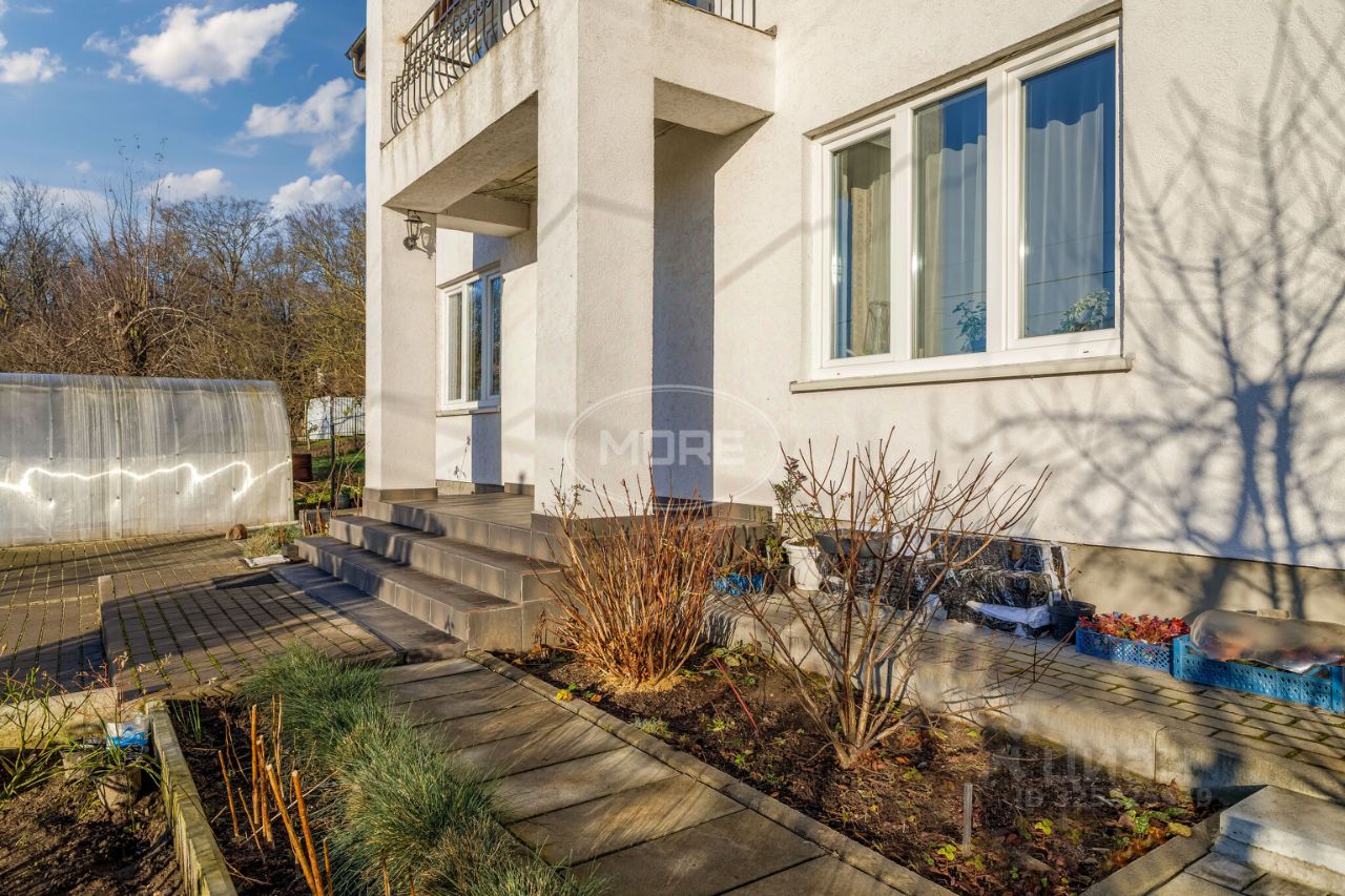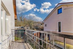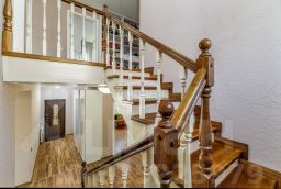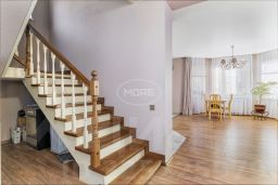 На второй этаж ведет железобетонная лестница, отделанная ясенем, где располагаются три спальни, санузел с ванной, гардеробная с выходом на большое чердачное помещение, используемое для хранения вещей. Из каждой комнаты есть выход на балкон.