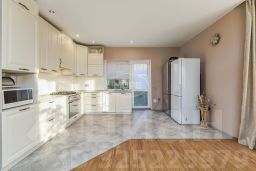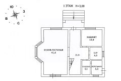 На первом этаже находятся просторная кухня-гостиная с эркером и выходом в сад на площадку патио, кабинет, санузел с душем, кладовая и котельная с выходом на улицу.
