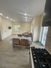 Второй этаж - это три комнаты с панорамными окнами, санузел. В доме сделан ремонт, в санузле установлена инсталяция Iddis, полотенце-сушитель сделан на заказ. Оборудована вместительная гардеробная комната, на кухне варочная стеклокерамическая газовая поверхность, установлен фильтр очистки Авкафор, кухонный гарнитур с доводчиками. Подключено телевидение и выделенная линия интернет 100мб/с.