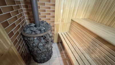 В доме выполнен евроремонт, установлены железобетонные перекрытия, а материал постройки — панельный. На участке площадью 8,08 соток есть гараж, баня и беседка. Также 6 соток земли в аренде.