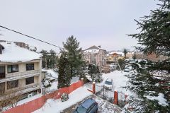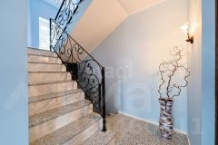 Внутренняя отделка: Стены выровнены и покрашены. Монументальная бетонная лестница облицована натуральным мрамором и гранитом.