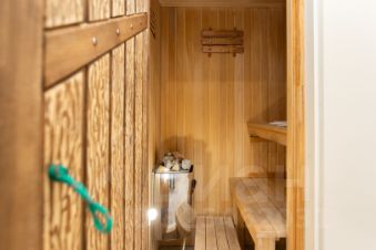 На первом этаже: кухня-гостиная в одном пространстве, с/у, кладовка и изюминка дома-электрическая сауна.