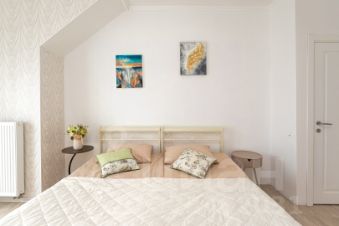 На втором этаже: з спальных комнаты, одна из них с большой гардеробной, с/у, открытый балкон.