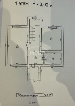 Высота потолков на первом этаже 3 метра, на втором 2,8 м.