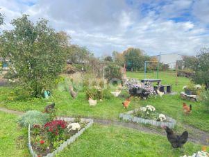Ухоженная территория, много цветов, плодовых деревьев. По периметру участка ели, туи и много декоративных кустарников. На территории в 32 сотки - обустроено 2 теплицы. Колодец. Много места для личных авто.