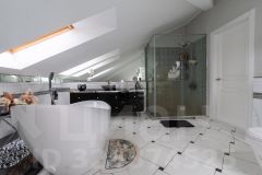 Второй этаж-мансардный. Межкомнатные двери и лестница изготовлены из натурального дерева.