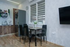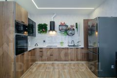 Кухня-гостиная с встроенной немецкой техникой, стильным декором и каминной зоной