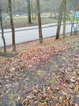 Участок трапецивидной формы, ровный, сухой, чистый. Возле забора растут 2 молодые ели.