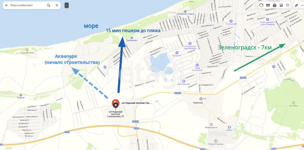 Отличная транспортная доступность: 500 метров до приморского полукольца А-217, 5 минут до автобусной остановки, 10 минут до остановки электропоезда