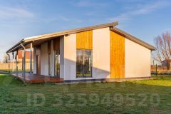 Элегантный фасад с качественной штукатуркой "Короед" и декоративными элементами из натурального дерева