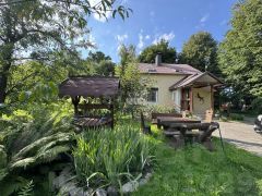 Общая площадь дома 100 кв.м. кухня, две гостинные, мансардная часть утеплена, инфракрасные батареи, камин. Подвал для хранения.
