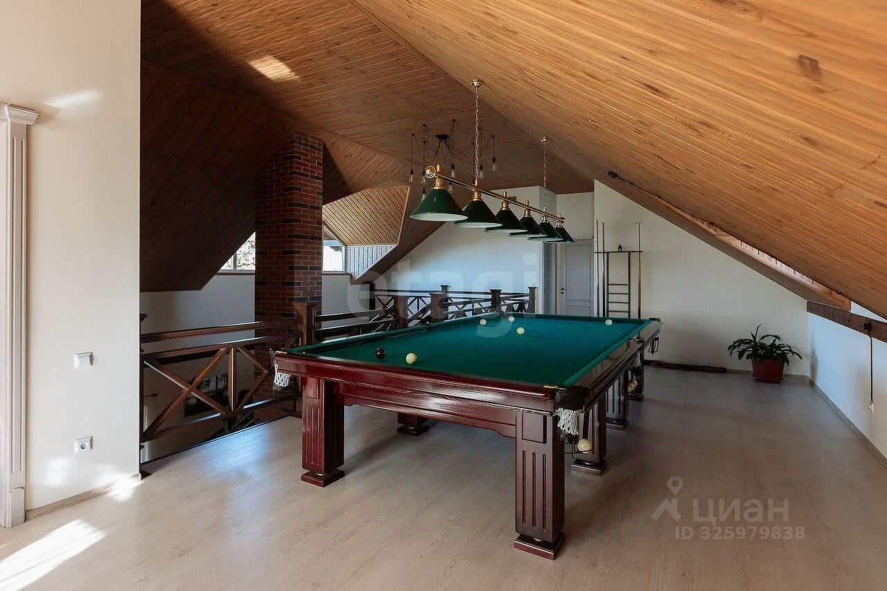 Второй этаж: гостевая зона и зона отдыха с бильярдным столом, детская спальня (с гардеробом и санузлом) кабинет, спортивный зал.