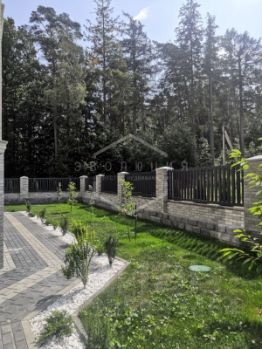 Придомовая территория полностью огорожена. Выполнен ландшафтный дизайн: разбиты газоны и цветники, высажены плодовые, вечнозеленые деревья и кустарники, организована lounge-зона с мебелью и шезлонгами, а так же отдельная летняя кухня с зоной барбекю. Центральные коммуникации с подземным подключением не нарушает гармоничный вид участка.