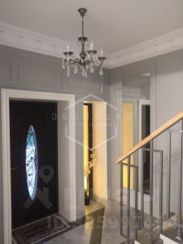 В доме выполнен дизайнерский ремонт в неоклассическом стиле, главная черта которого — это гармоничное сочетание традиций и инноваций. Неоклассика взяла из классических интерьеров склонность к использованию натуральных материалов, в интерьере использовались такие материалы как натуральное дерево и камень. Благодаря панорамному остеклению и высоким потолкам весь дом наполняется светом.