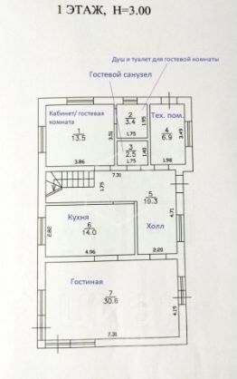 Потолки: 3м - 1 этаж, 2,7м - 2 этаж.