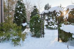Дом расположен на земельном участке площадью 9,4 соток (в собственности), где выполнен ландшафтный дизайн с особым вниманием к деталям, высажены редкие экземпляры хвойных и лиственных пород деревьев и различных цветов и кустарников.