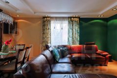 Гостиная комната 31.3 м2, с мягкой и корпусной мебелью, а также техникой.