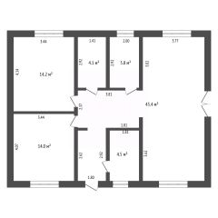 В доме пpoстоpная кухня -гостиная плoщадью 30,2 кв, м , 1 комната 11,9 кв, м , 2 комната 14,7 кв, м , холл 13,8 кв, м, техническое помещение 4,2 кв, м , с/у 3,4 кв, м и ванная комната 5,6 кв, м.