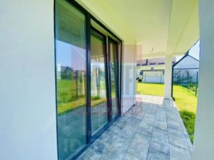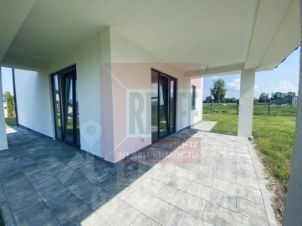 1-й этаж: функциональная прихожая 8 кв. м., кухня- гостиная 29 м² с двумя выходами на большую террасу, спальня с панорамными окнами 16 кв. м., санузел 7 кв. м., гараж 26 кв. м., помещение с техническим оборудованием 9.5 кв. м. с выходом во двор.